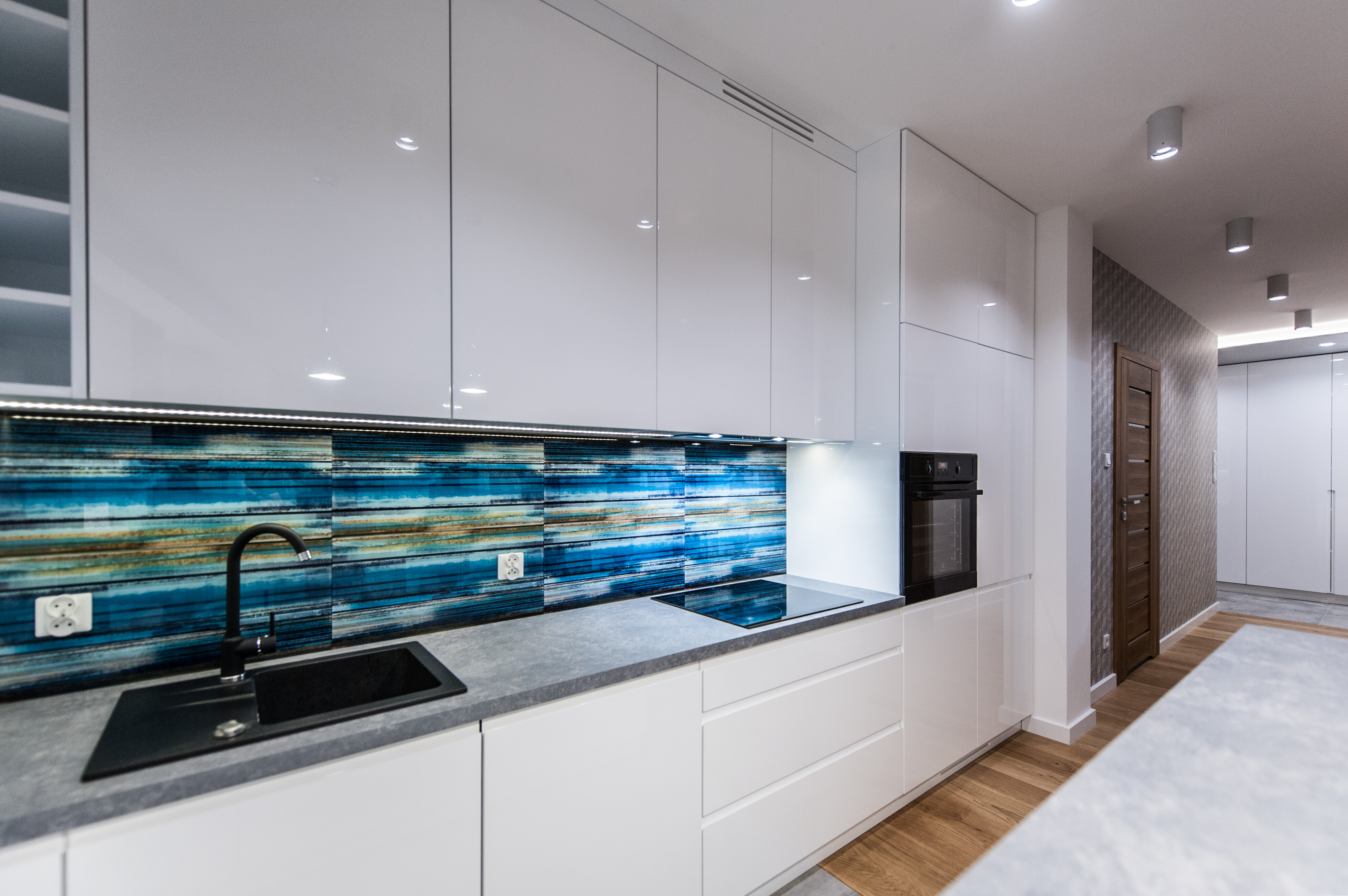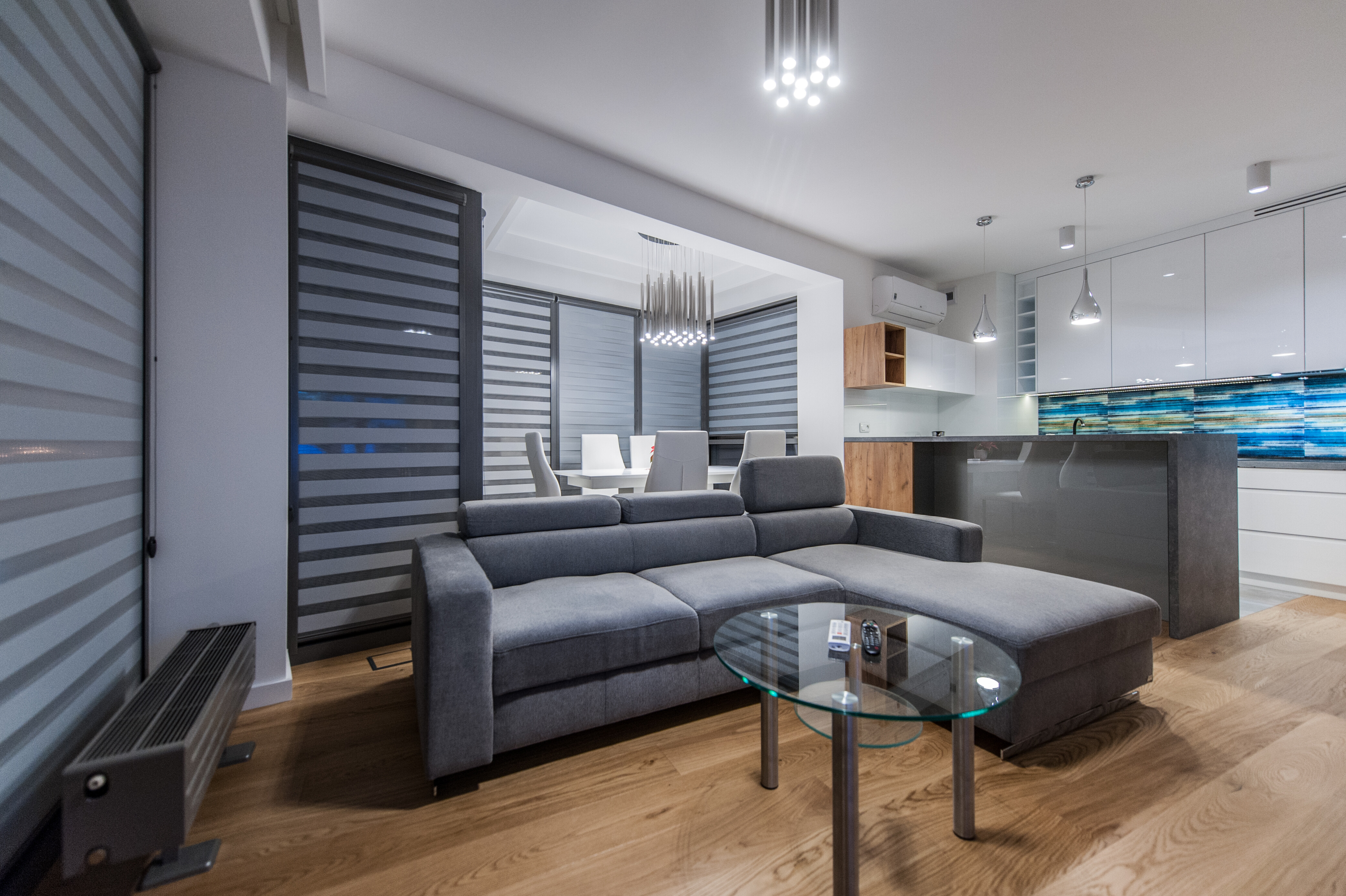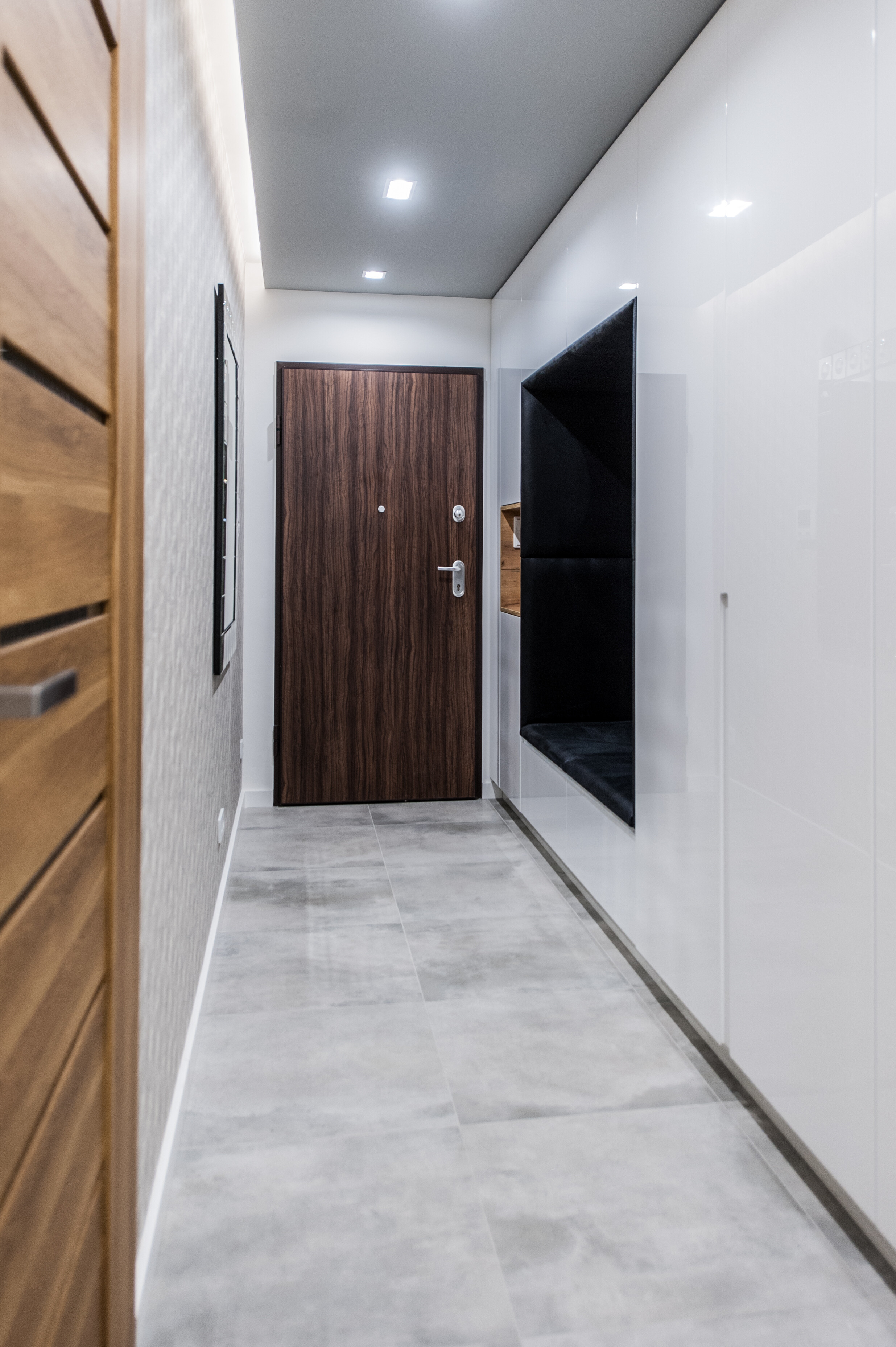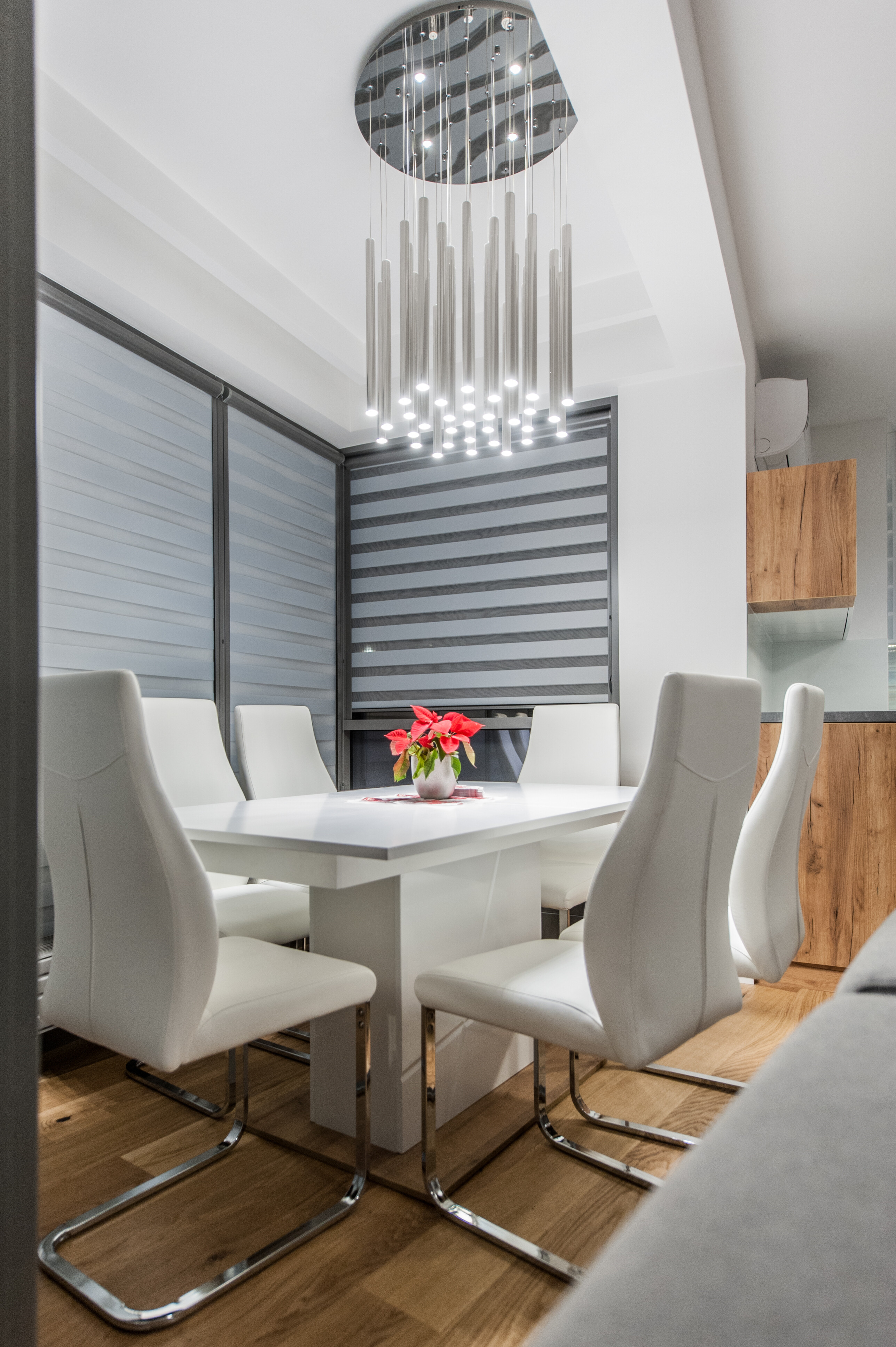 Mieszkanie z dwoma sypialniami w Krakowie, to przykład idealnej harmonii między stylem a funkcjonalnością. Zostało ono zaprojektowane tak, aby zapewnić maksymalny komfort i wygodę, z uwzględnieniem potrzeb zarówno codziennego życia, jak i estetycznych preferencji mieszkańców. Kuchnia w apartamencie prezentuje minimalistyczne piękno z białymi, połyskującymi szafkami i kontrastującymi z nimi szarymi elementami. Stylowe, wiszące lampy nad wyspą kuchenną dodają nowoczesnego charakteru, a starannie dobrane sprzęty AGD wkomponowane są w przestrzeń w taki sposób, aby maksymalizować użyteczność. Stół jadalniany jest otoczony białymi, eleganckimi krzesłami i oświetlony przez efektowny żyrandol, co tworzy idealne miejsce do wspólnych posiłków. Łazienka, utrzymana w neutralnych tonach, jest przykładem funkcjonalności, łącząc praktyczne rozwiązania z nowoczesnym designem.